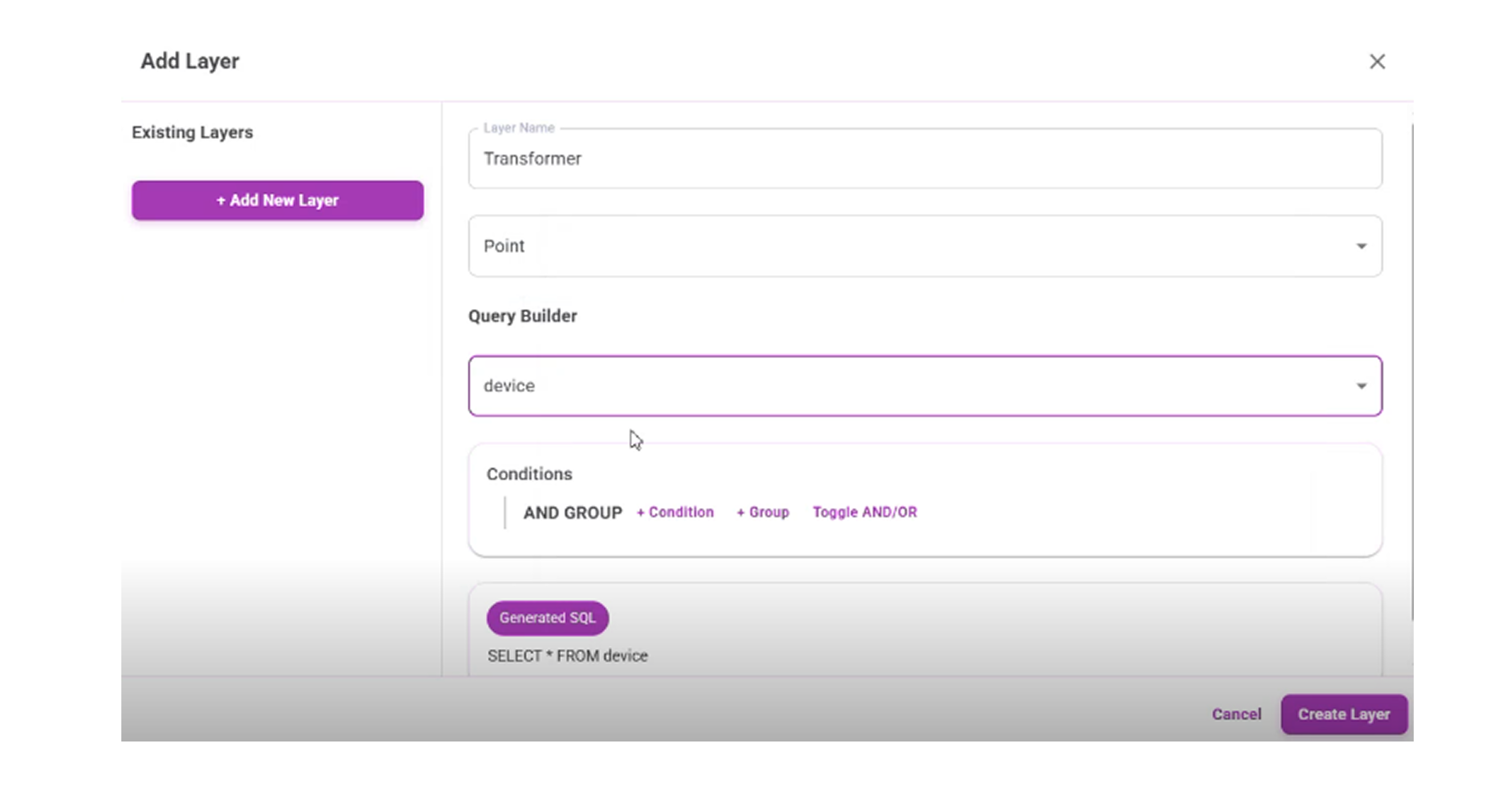 Sublayers allow you to group and visualize a filtered subset of data from an existing layer. This helps you focus on specific elements such as transformers, switches, or critical devices within a larger dataset.