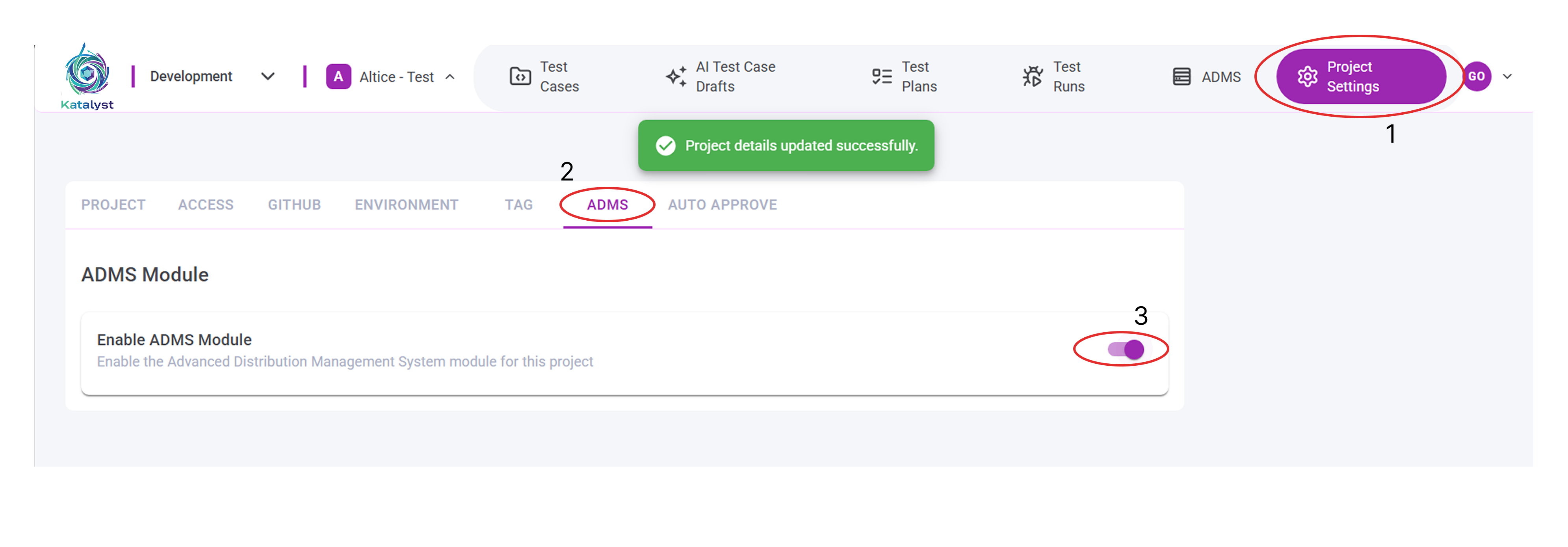 Follow the below steps to enable the ADMS feature in your project