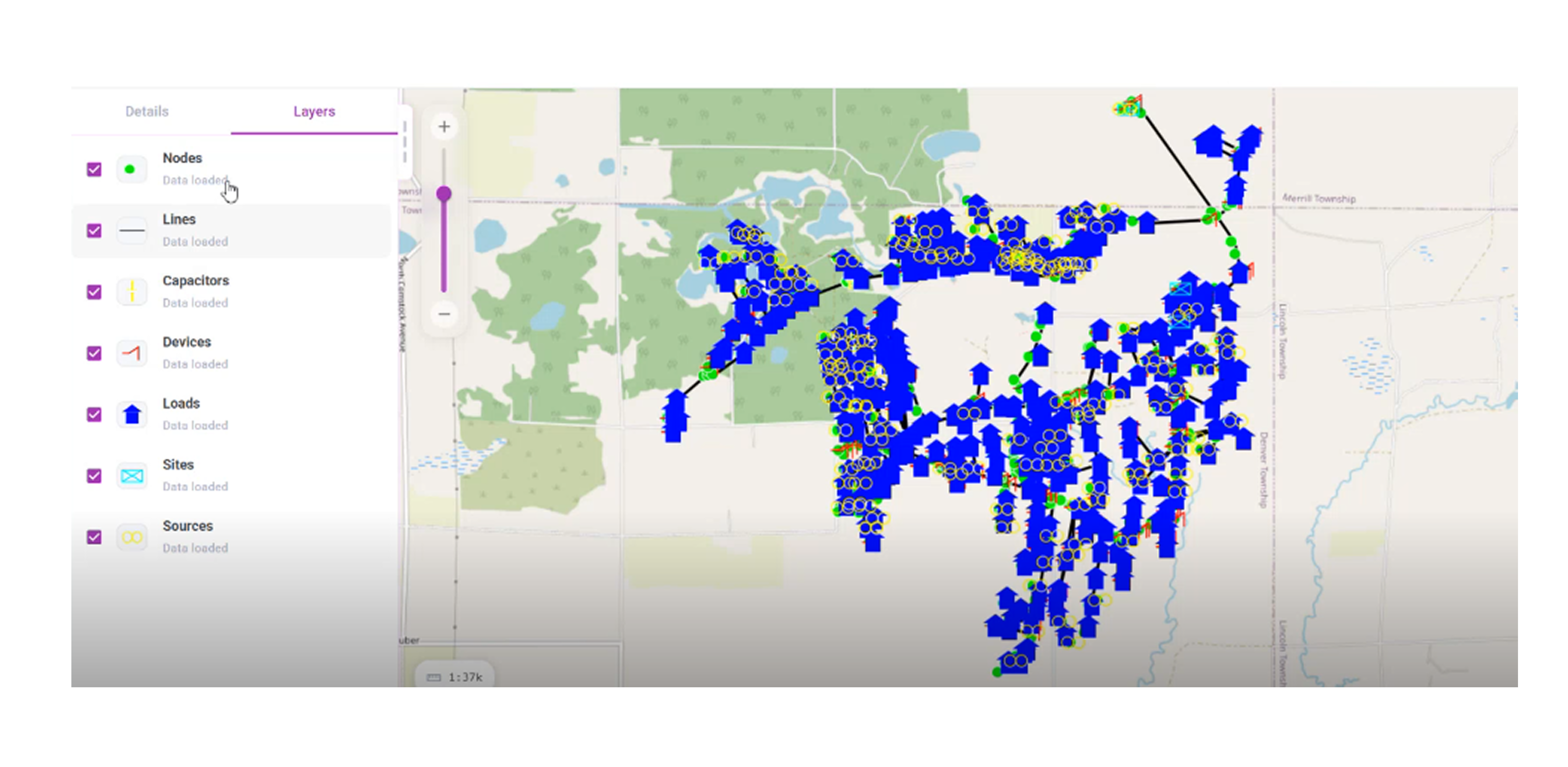 Once uploaded, the data is automatically processed and visualized on the map with different layers.