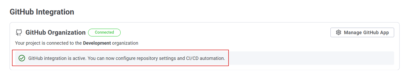 - Connect a GitHub organization once and reuse it across multiple projects.